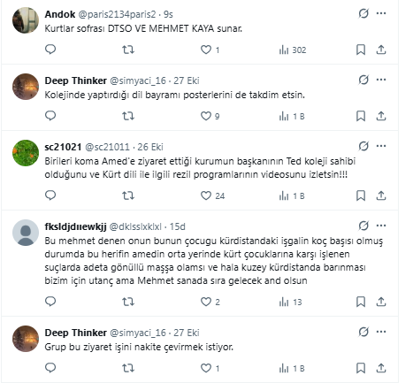 Sosyal medya kullanıcıları, DTSO'nun ziyaret paylaşımın altına yazdıkları yorumlarda Koma Amed ziyaretlerine tepki gösterdiler.