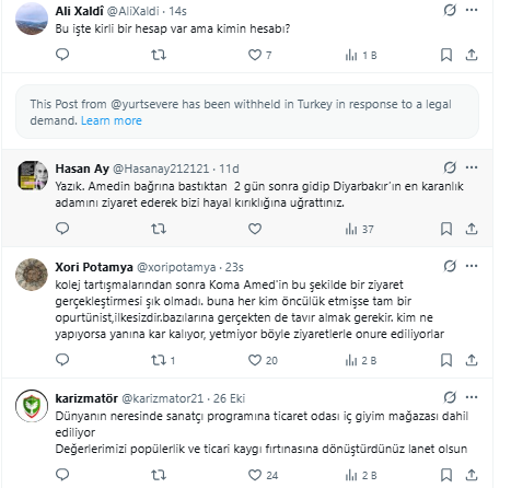 Sosyal medya tepkilerinde Koma Amed’in yaptığı kimi ziyaretlerdeki ticari mantığa eleştiriler yöneltildi.