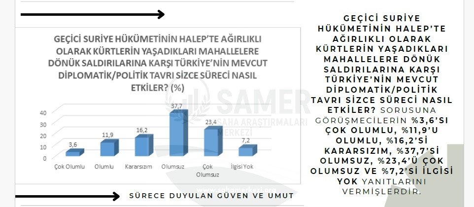 doğrudan etkilediği kanaatini taşımaktadır. Verilere göre sınır ötesi Kürt politikalarına yönelik olumsuz algı, iç barışa dair beklentileri de zayıflatmaktadır. Bu durum, iç ve dış politikanın toplumsal algı düzeyinde birbirinden bağımsız okunmadığını göstermektedir."
