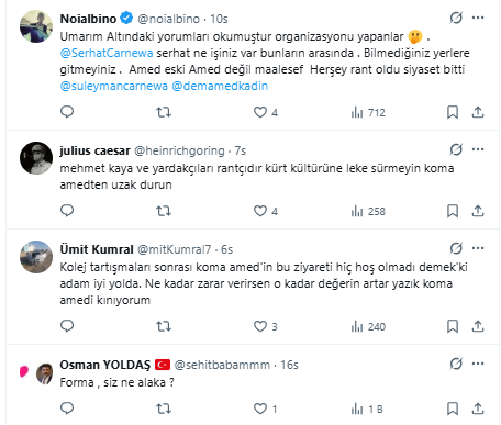 Sosyal medya tepkilerinde Koma Amed’in yaptığı kimi ziyaretlerdeki ticari mantığa eleştiriler yöneltildi.