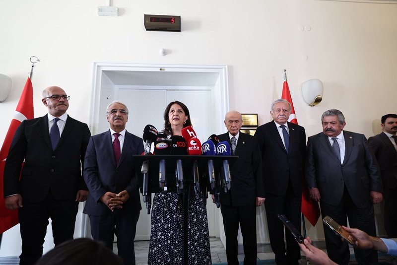 “Sayın Öcalan Komisyon ile özel bir tartışma yürütmek istediğini ifade etti. Demokratik bir çerçevede kendi görüşlerimi kendileri ile paylaşacağım diyor” diyen Pervin Buldan, “Sürecin başından beri ifade ettiği bir şey var; PKK’nin ortaya çıkışı, PKK’nin fesih edilmesi, PKK’nin Sayın Öcalan’ın çağrısı ile ortadan kalktığı zaman süreci ile ilgili Meclis Komisyonuyla konuşmak istiyor. PKK’nin ortaya çıkışının sebeplerini Meclis Komisyonu ile konuşacağını, bununla birlikte gelişen süreç ile birlikte kendisinin baş aktör olarak PKK’yi fesih ettiğini, demokratik siyasetin önünü açtığını bunu yaparken de Türkiye’nin demokratikleşmesine katkı sağlayacağını belirten bir yerden yaklaşıyor. Dolayısıyla Komisyonu hem dinlemek istiyor hem de kendi görüşlerini aktarmak istiyor. Sürece güçlü bir perspektif ile katkı sunma iradesi olduğu belirtiyor. Dolayısıyla Komisyon Sayın Öcalan ile görüşürse ve kendisini dinlerse ortaya çıkacak yasalara da katkı sunacağını düşünüyor. Bu onun en doğal hakkı. Çıkacak yasaların hukuki ve siyasi zemininin nasıl olacağına dair şuana kadar her hangi bir şey yok. Bunu da tartışmak istiyor. Kendini fesheden örgütün üyelerinin, Kandildekilerin demokratik siyasete nasıl katılacaklarına dair, bundan son neler yapacaklarına dair bir düzenlemenin yapılması gerek. Demokratik entegrasyona dair bir düzenlemenin yapılması gerektiğini düşünüyor. Bu konudaki görüşlerini demokratik bir müzakere çerçevesinde hem tartışmak hem de onları dinlemek istediğini son görüşmede belirti. Görüşmeden sonra devlet yetkilileri ile de bunu paylaştık. Komisyonun biran önce İmralı’ya gitmesi gerek. Dinlenme faslı bittikten sonra İmralı’ya Komisyon gitmeli” ifadelerini kullandı.