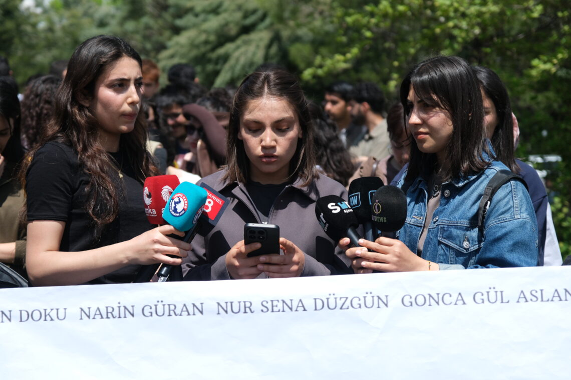 Üniversiteli gençler ve genç kadınlar olarak özel savaş politikalarınızın karanlığına teslim olmayacağız. Üstü örtülmeye çalışılan kadın cinayetlerine ve “şüpheli” bırakılan ölümlere karşı sessiz kalmayacağız, kampüslerden sokaklara mücadelemizi sürdüreceğiz. Mücadelemizi her yerde daha da büyütüp kadın devrimi ile taçlandıracağız.” dedi.